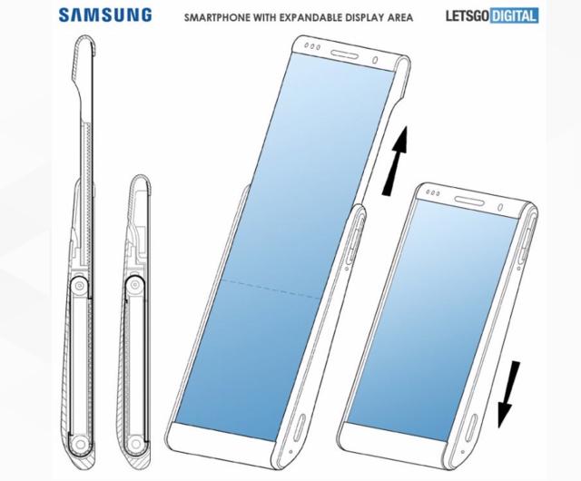 柔性屏的誕生讓手機(jī)廠商們?yōu)橹偪瘢X海里的天馬行空終于能實(shí)現(xiàn)了,每家每戶都卯足了馬力申請(qǐng)奇奇怪怪的專利。折疊屏可能只是開胃小菜,往后手機(jī)屏幕的發(fā)展會(huì)不會(huì)走歪這個(gè)我不太確定,但是現(xiàn)在手機(jī)廠商們已經(jīng)不能用走來(lái)形容他們的創(chuàng)新能力,他們都在“跳”。三星近日曝光了一個(gè)關(guān)于柔性屏的新專利,采用了類似“畫軸”的拉伸設(shè)計(jì),將屏幕的一部分藏著手機(jī)內(nèi)部,拉伸后手機(jī)明顯變長(zhǎng),屏幕顯示面積大可以增加60%。這種畫軸式設(shè)計(jì)難點(diǎn)在于分體式使用兩塊屏幕拼接會(huì)出現(xiàn)果凍屏的效果,如果使用一整塊柔性屏設(shè)計(jì),那么被折疊的部分屏幕壽命則成為難點(diǎn),不過(guò)無(wú)論使用哪一種設(shè)計(jì)根據(jù)當(dāng)前電子元件以及機(jī)械零件的大小終導(dǎo)致的結(jié)果都是手機(jī)變得異常厚實(shí)。