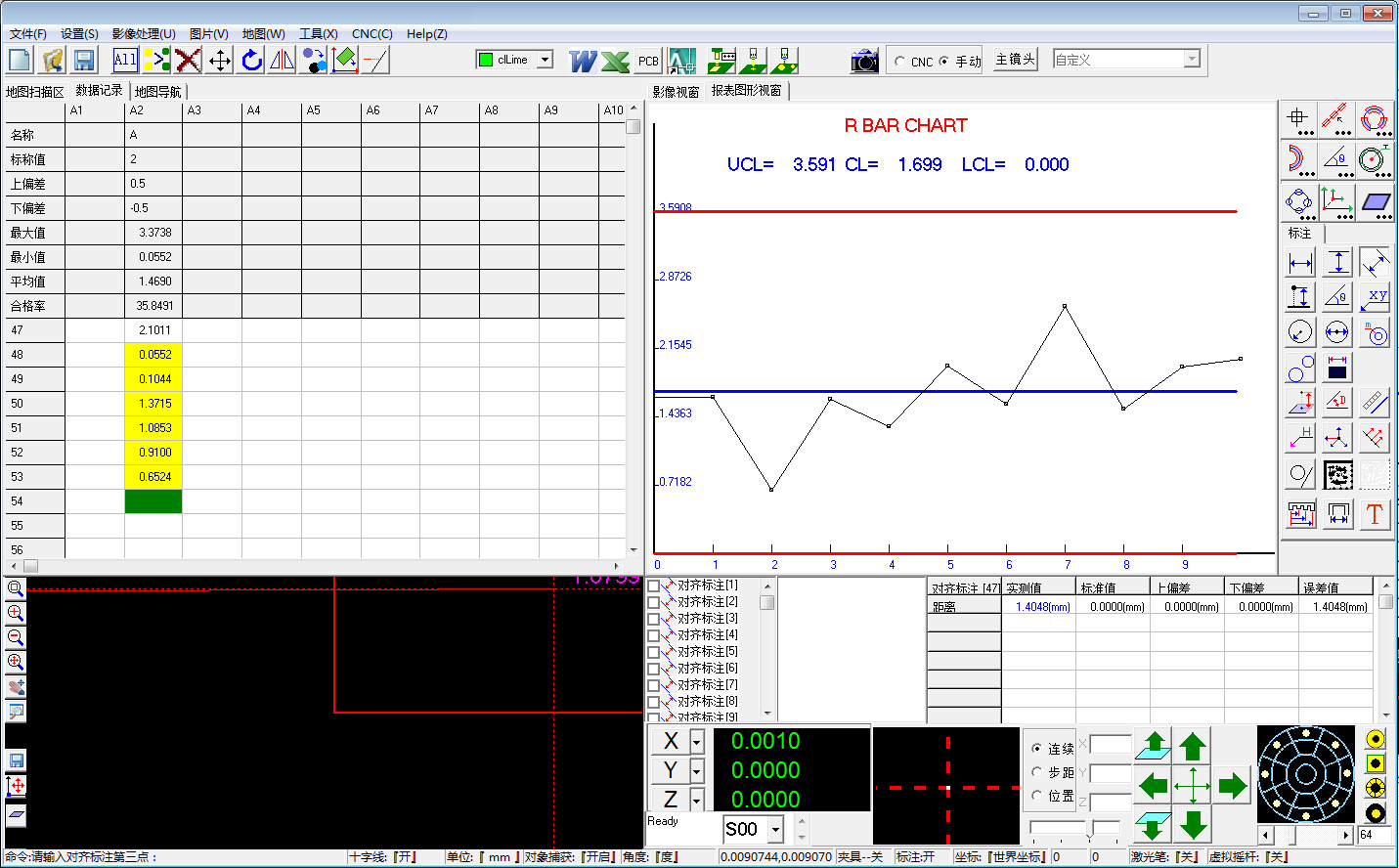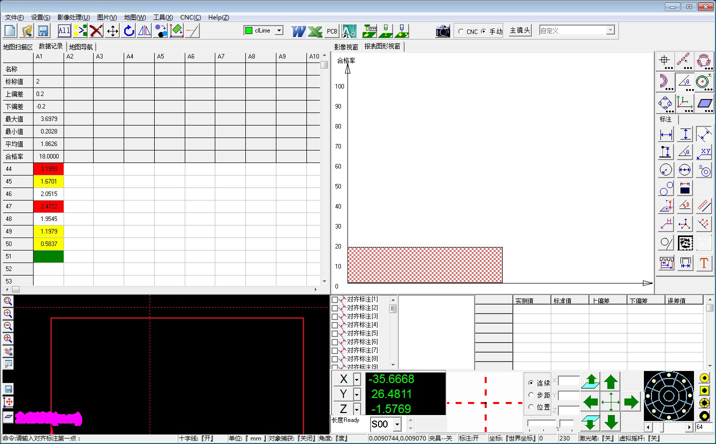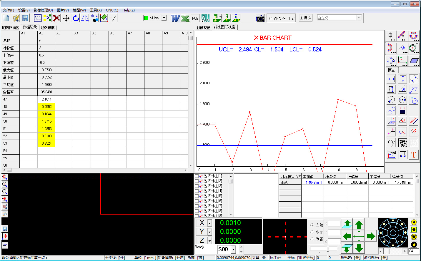影像測量儀CPK報表等級和數(shù)值用于即時顯示測量結(jié)果是否符合既定標(biāo)準(zhǔn),如下圖: